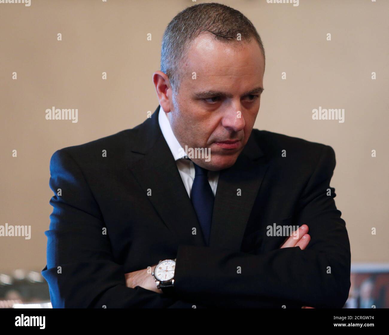 Keith Schembri Chief Of Staff In The Office Of Malta S Prime Minister Joseph Muscat Waits For Official Talks Between Muscat And His Macedonian Counterpart Zoran Zaev To Begin At The Auberge De